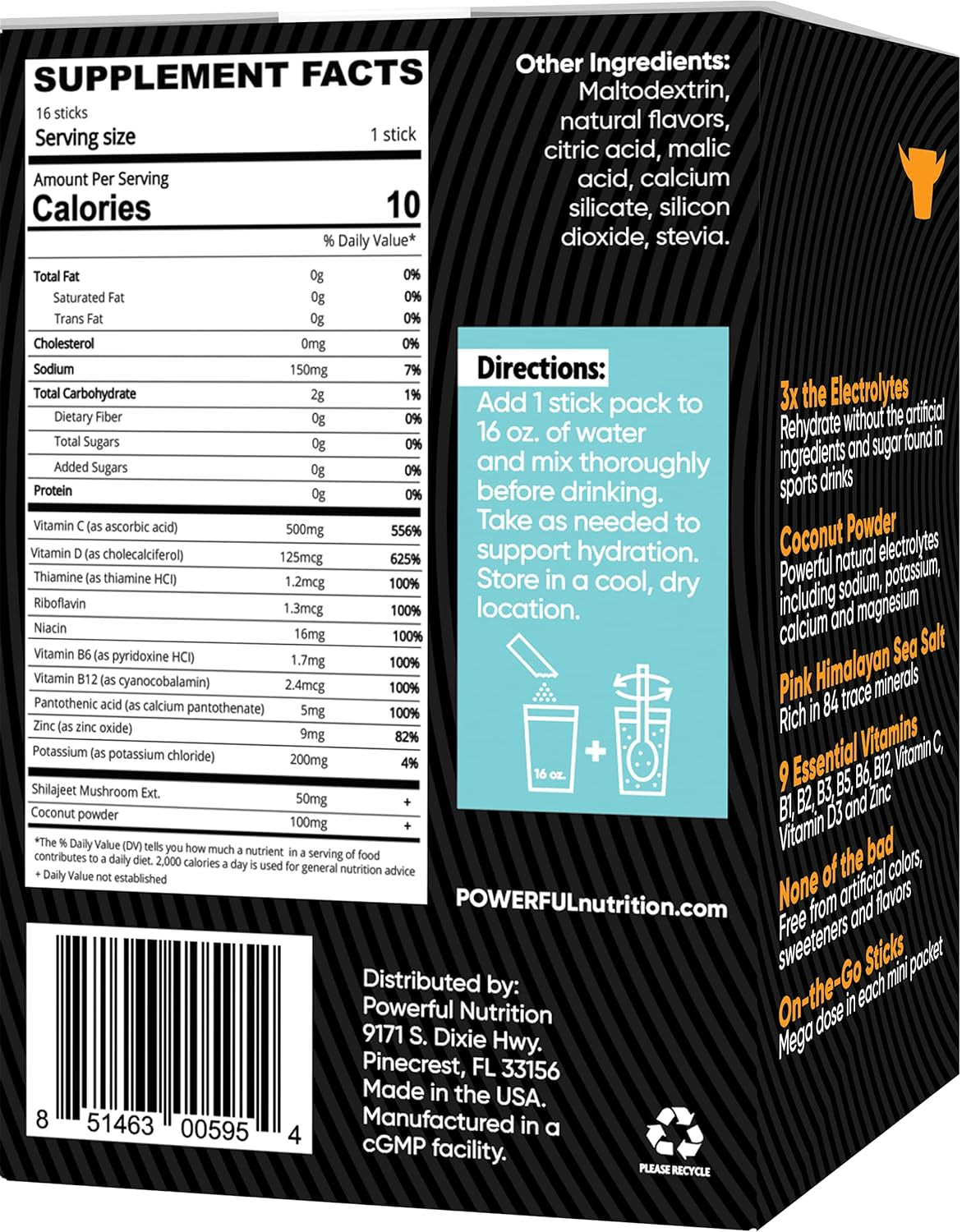 - HYDRATE ON THE GO: Powerful Nutrition Hydration packets are easy and convenient. Simply add 1 stick of electrolyte powder mix to 16 ounces of water and mix thoroughly. Take as needed to support hydration and recovery.