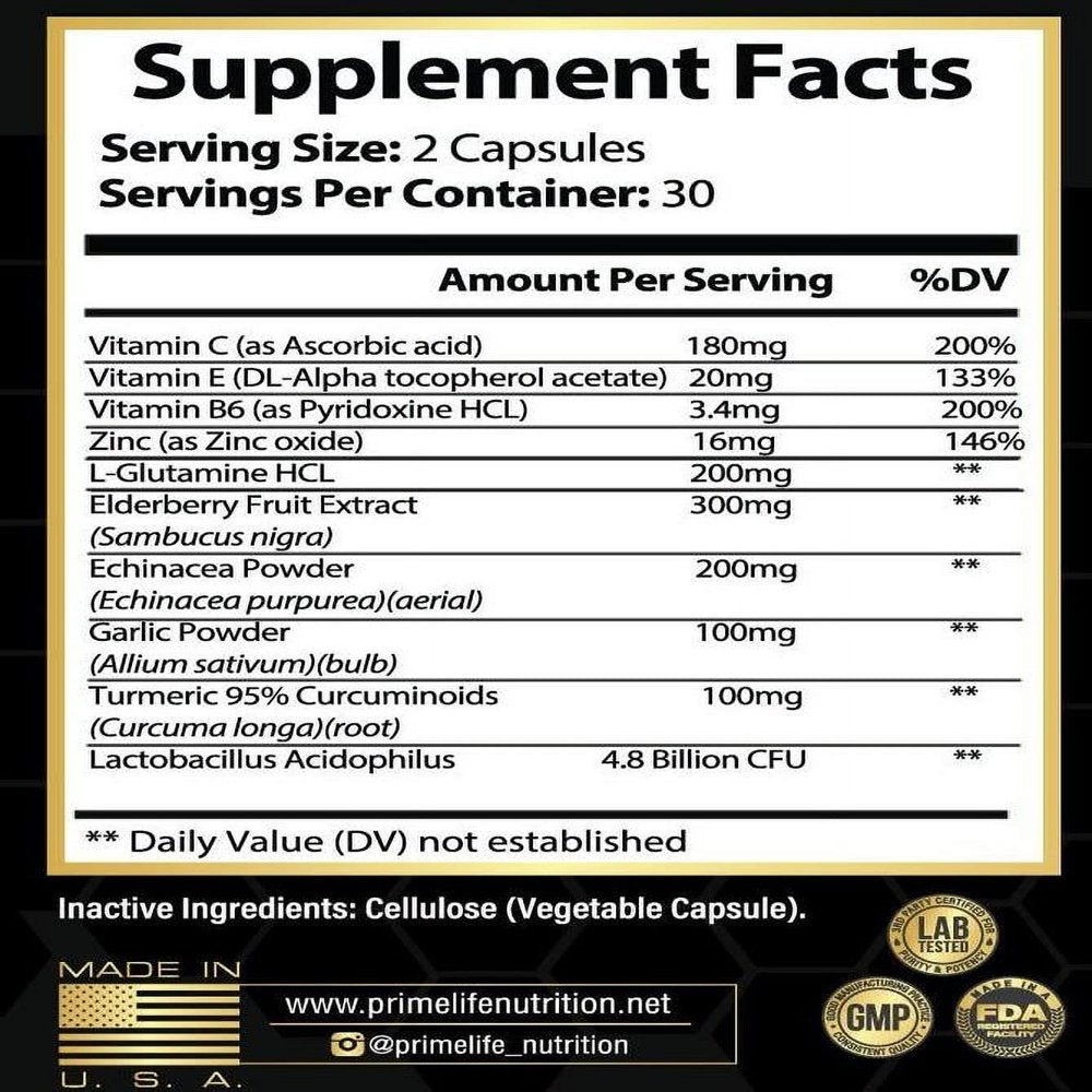 Primelife Immunity+ Immune System Booster with Elderberry, Zinc & Vitamin C - Daily Defense Supplement, 60 Capsules