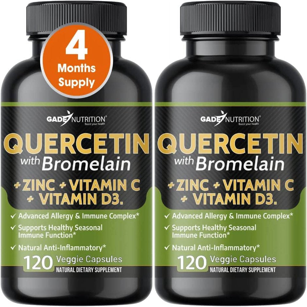 Quercetin with Vitamin C and Zinc - Quercetin 500Mg - Quercetin with Bromelain - Zinc Quercetin - 240 Veggie Caps. Quercetin Supplements + Vitamin D3 (Non-Gmo, Gluten-Free, Vegan)