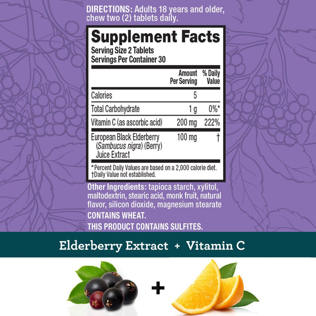 - HIGH QUALITY INGREDIENTS & TRANSPARENTLY SOURCED ELDERBERRY: These chewable tablets are VEGETARIAN, NON-GMO, and have natural flavors. Our Elderberry Extract is sourced in Austria and is guaranteed for purity, freshness and ingredient quality.