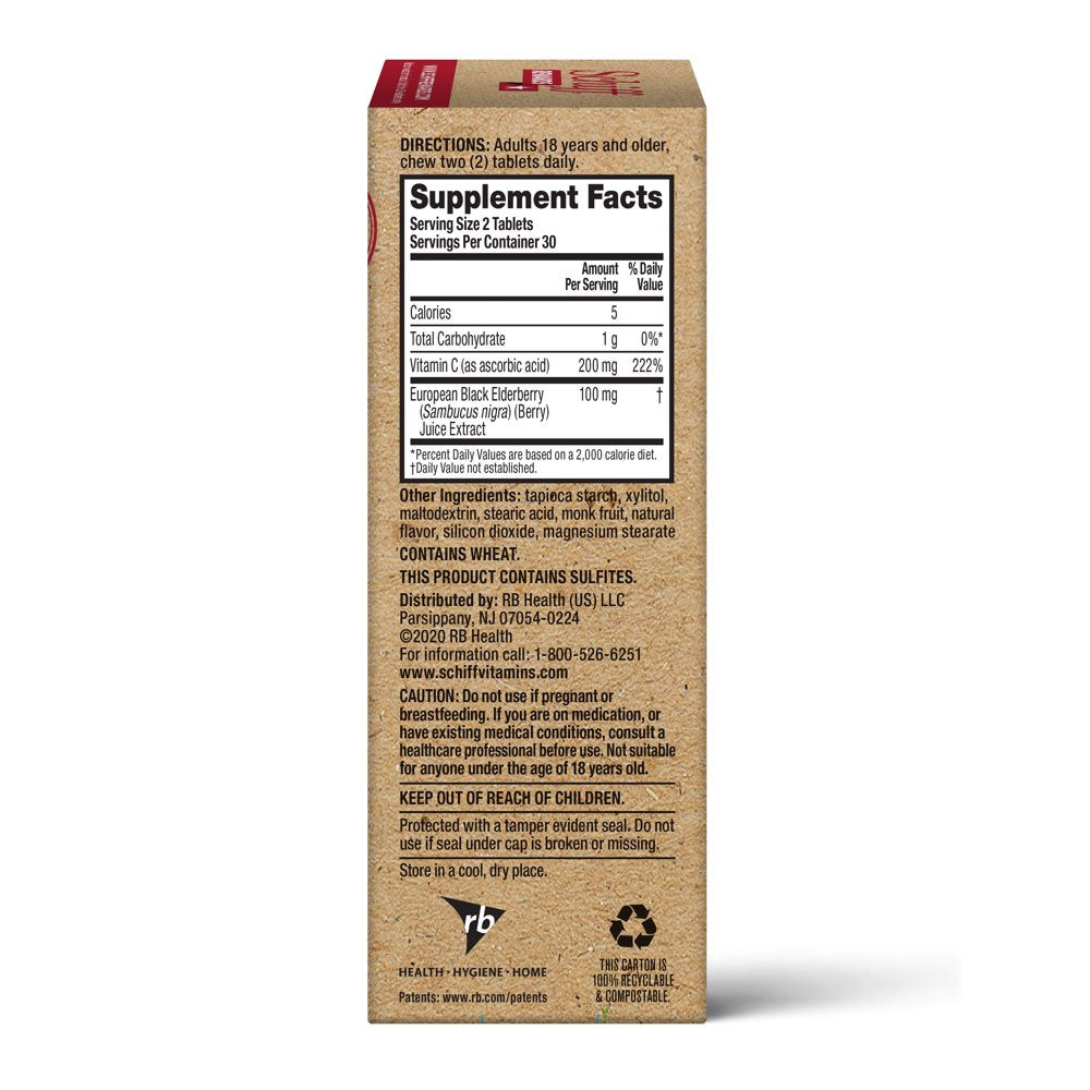 Schiff Elderberry Extract & Vitamin C Chewable Tablets (60 Count), Vegetarian & Non-Gmo Supplement with Natural Flavors, Helps Support a Healthy Immune System٭