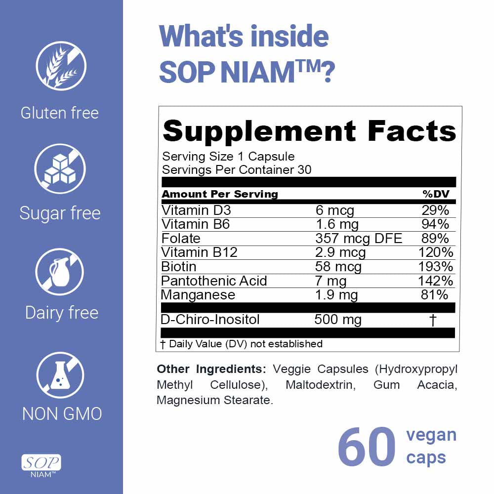 SOP NIAM - 60 Day Supply- |PCOS Supplement | D-Chiro Inositol + Multivitamin Capsules - Hormonal and Metabolic Balance in a Woman'S Reproductive Cycle - 60 Veggie Capsules