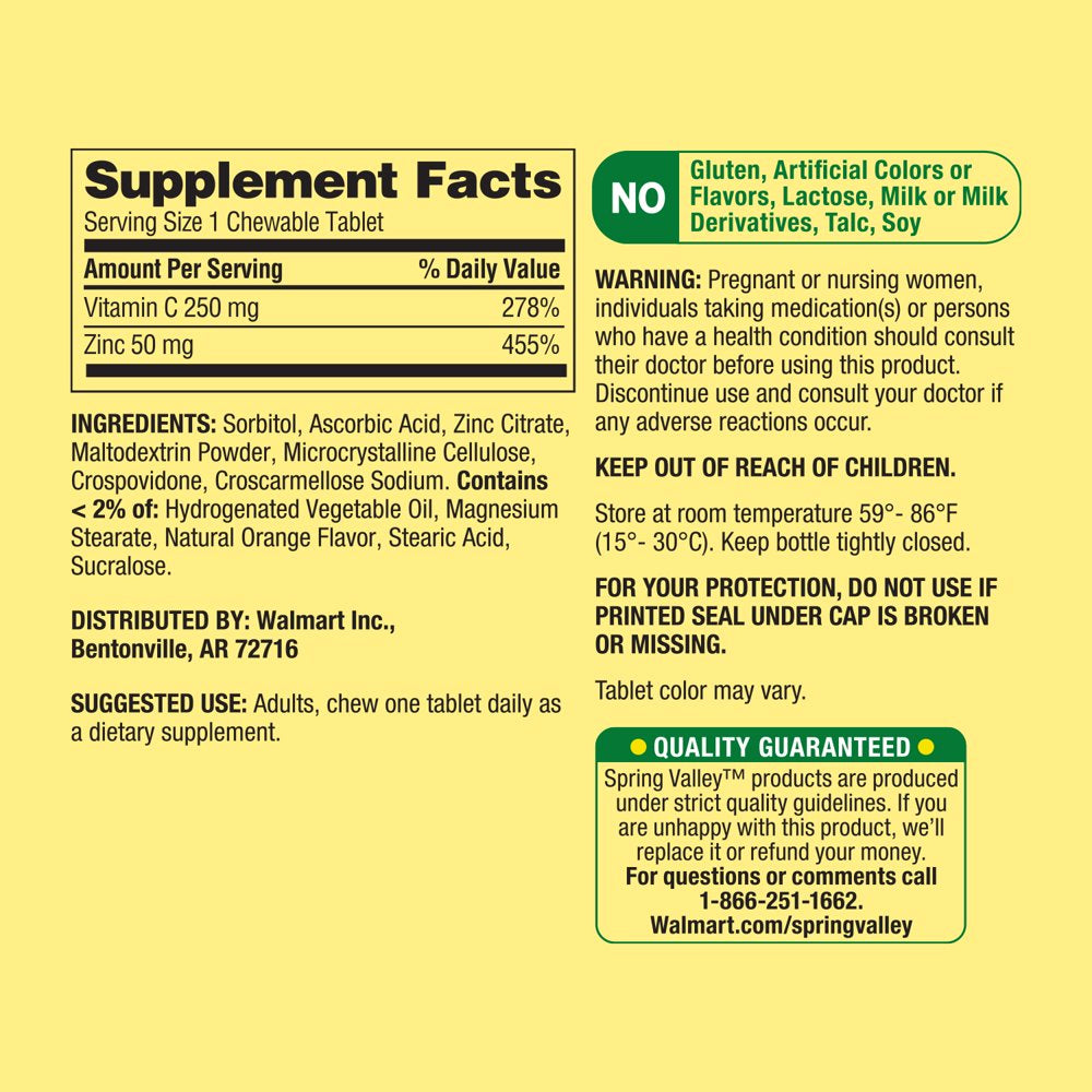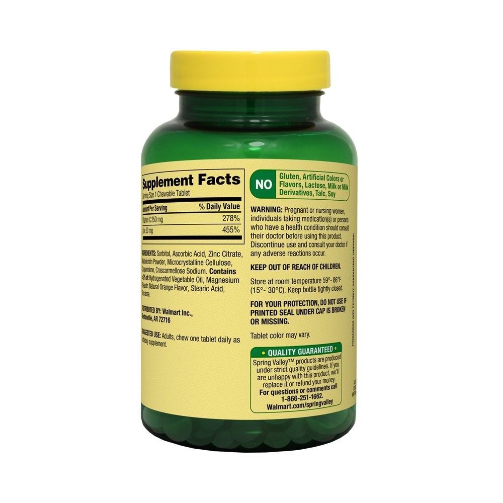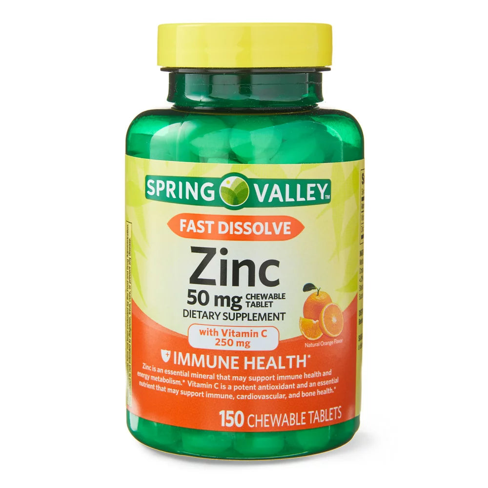 - Spring Valley Fast Dissolve Zinc with Vitamin C, Chewable Tablets, Orange, 150 Count
