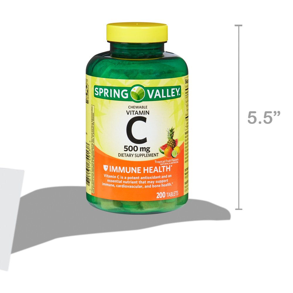 - Spring Valley Vitamin C Chewable Tablets Dietary Supplement, Tropical Fruit Flavors, 500 mg, 200 Count