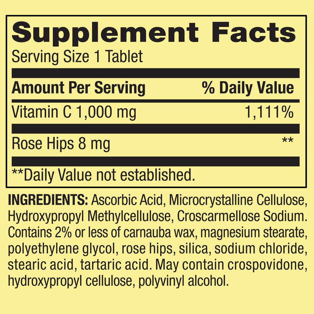 - 1,000 mg of vitamin C and 8 mg of rose hips per tablet