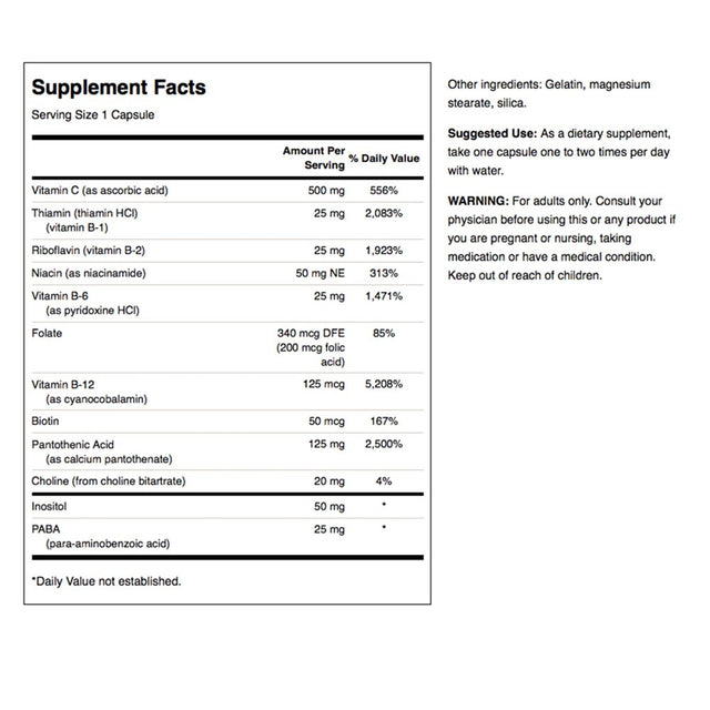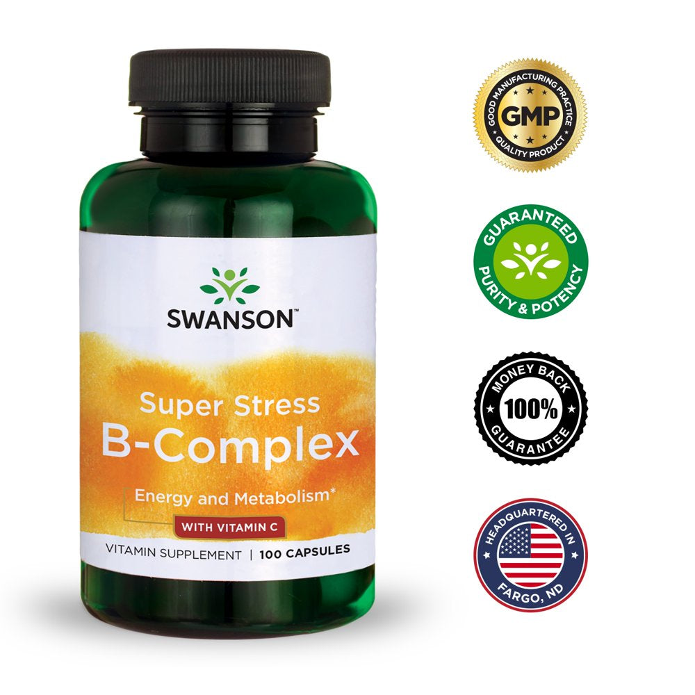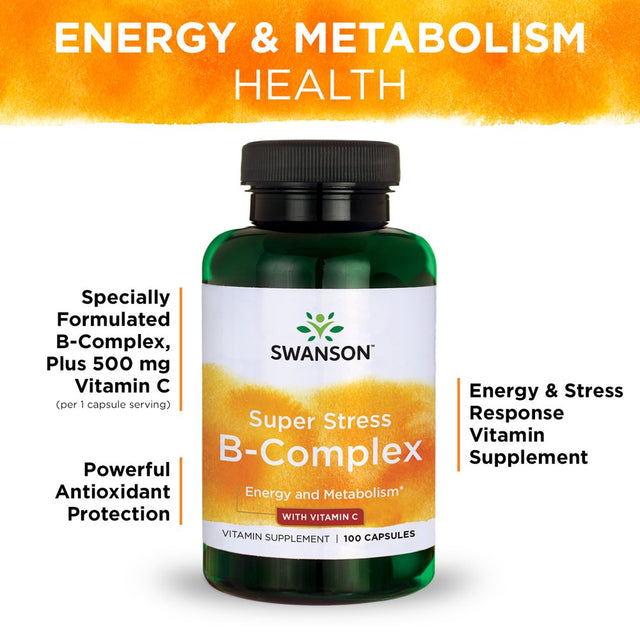 This vitamin B complex features crucial B vitamins like niacin, folate and B12 combined with immune-supporting vitamin C for a stress-busting immune support combination formula fit for whatever life throws at you. If stressful situations leave you feeling drained, you may be. Replenish helpful high-demand nutrients during tense times like B vitamins to support serotonin production and brain function so you can stay resilient when the going gets tough. Paired with antioxidant support from 500 mg of vitamin C and 25 mg of vitamin B6 to promote biochemical reactions in the immune system, this dynamic duo may help keep immune function on the up-and-up. For a full-service wellness boost, Swanson Super Stress B-Complex offers crucial nutrients needed to support both emotional wellbeing and immune function with one convenient capsule.