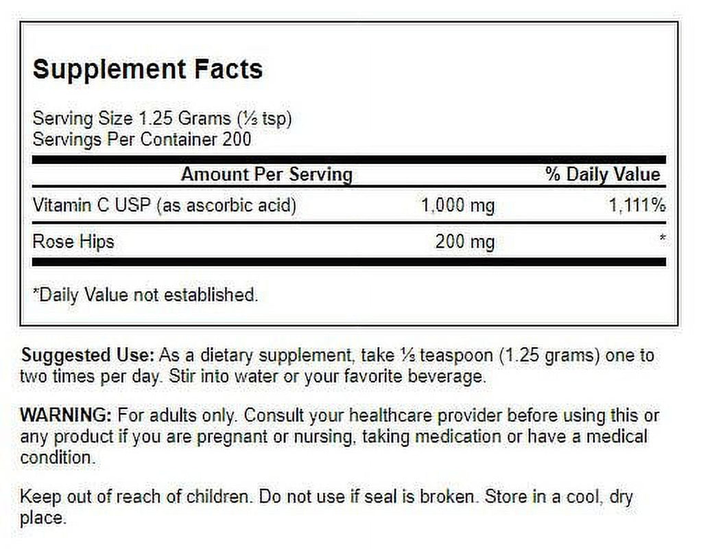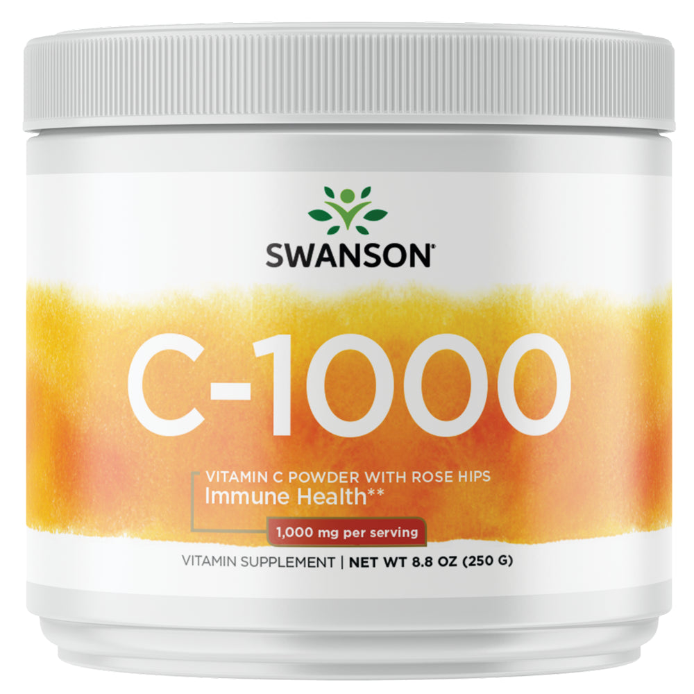 The perfect vitamin C supplement for people who have trouble swallowing pills, Swanson C-1000 Vitamin C Powder with Rose Hips lets you turn any beverage into a high-potency source of antioxidant protection. Just one third of a teaspoon mixed with water or juice delivers 1,000 mg of vitamin C nutrition, but that's not all. Each serving also includes 200 mg of rose hips, a rich source of flavonoid compounds that work synergistically with vitamin C to optimize its free-radical quenching capabilities.