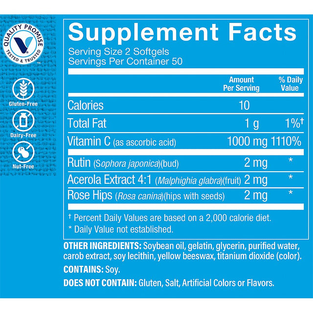 The Vitamin Shoppe Vitamin C 1,000MG, Easy to Swallow, Antioxidant That Supports Immune and Cardiovascular Health (100 Softgels)