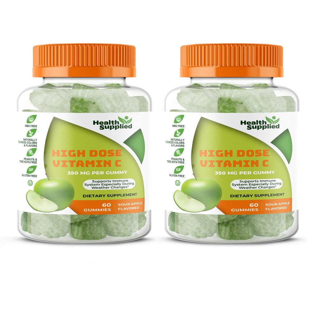 Vitamin C 1050Mg Immune Support Booster Gummies 2 Pack | Daily Dietary Supplement | Natural Yummy Sour Apple Flavor Gummy | Vegan, Plant Based Pectin - for Adult Men Woman Teens & Kids