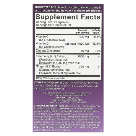 Viva Naturals Elderberry, Vitamin C + Zinc, 120 Capsules