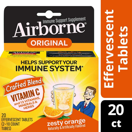 Airborne 1000Mg Vitamin C Immune Support Effervescent Tablets, Zesty Orange, 20 Count