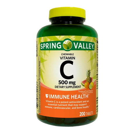 Spring Valley Vitamin C Chewable Tablets Dietary Supplement, Tropical Fruit, 500 Mg, 200 Count