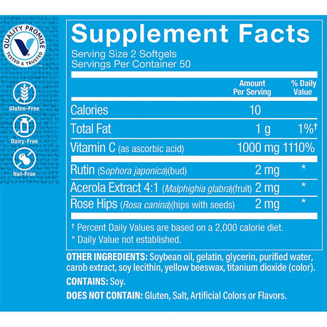 Spring Valley Vitamin C with Rose Hips Tablets Dietary Supplement, 1,000 Mg, 250 Count