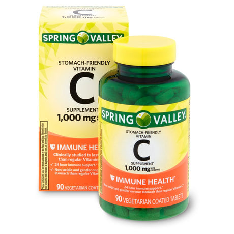 Spring Valley Stomach-Friendly Vitamin C Supplement, 1,000 Mg, 90 Tablets