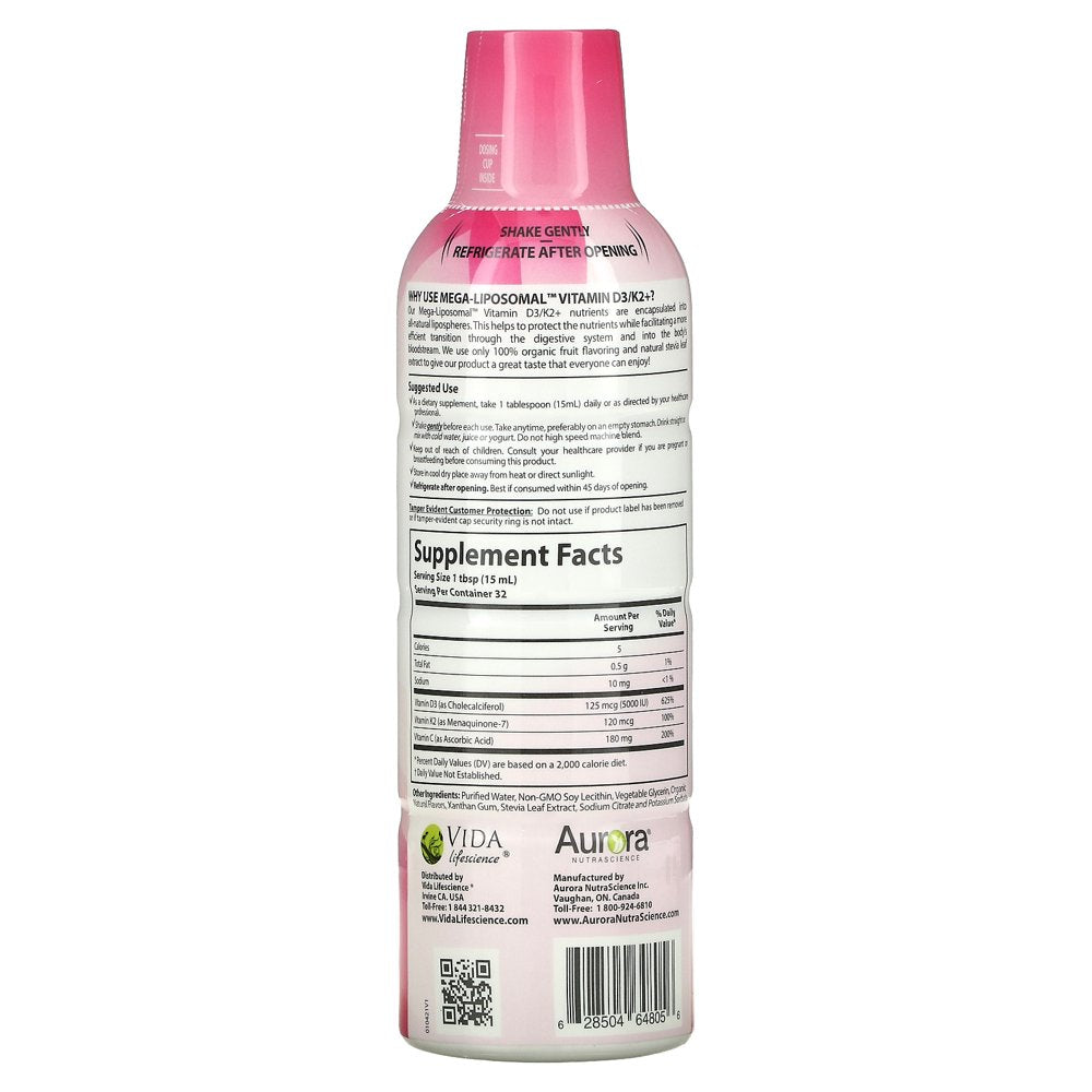 Aurora Nutrascience Mega-Liposomal Vitamin D3/K2+, Organic Fruit, 16 Fl Oz (480 Ml)