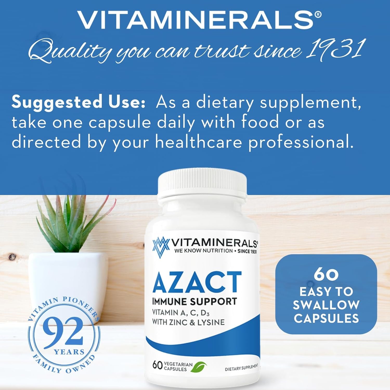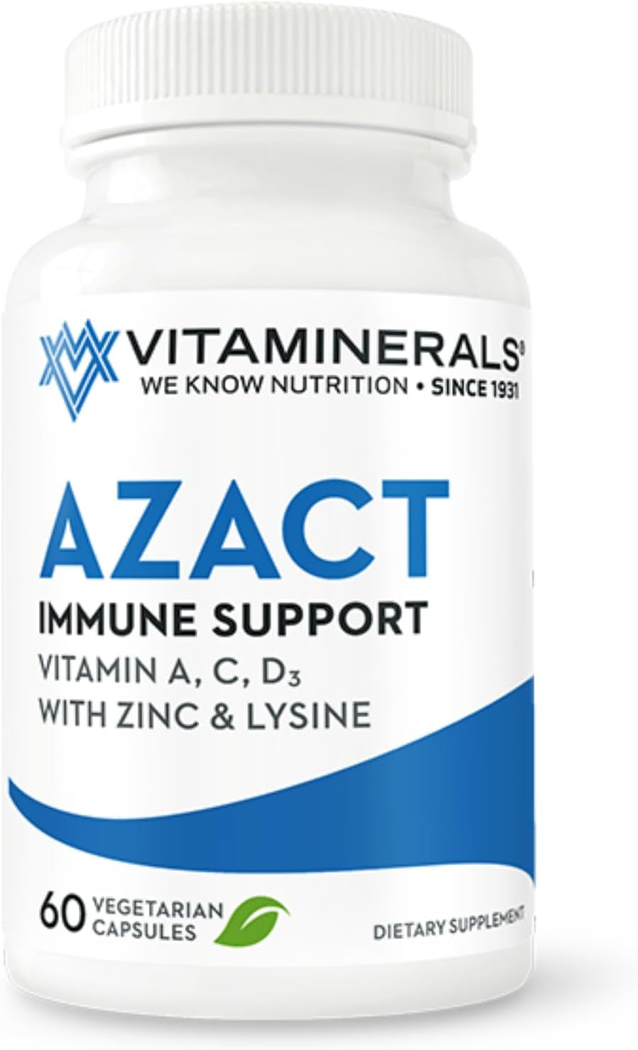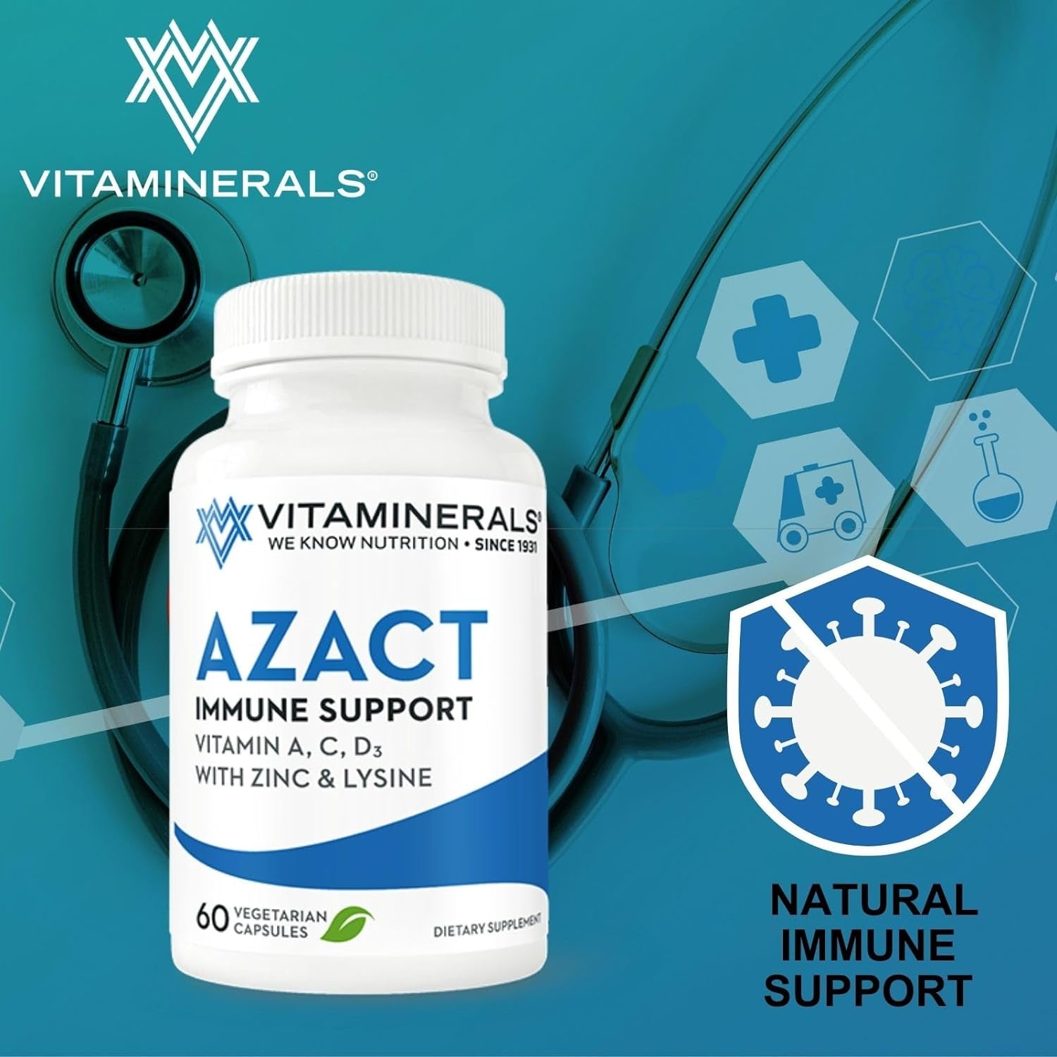 AZACT | Vitamin a | Vitamin C | Vitamin D3 | Zinc | Lysine | Quercetin | 60 Vegetable Capsules