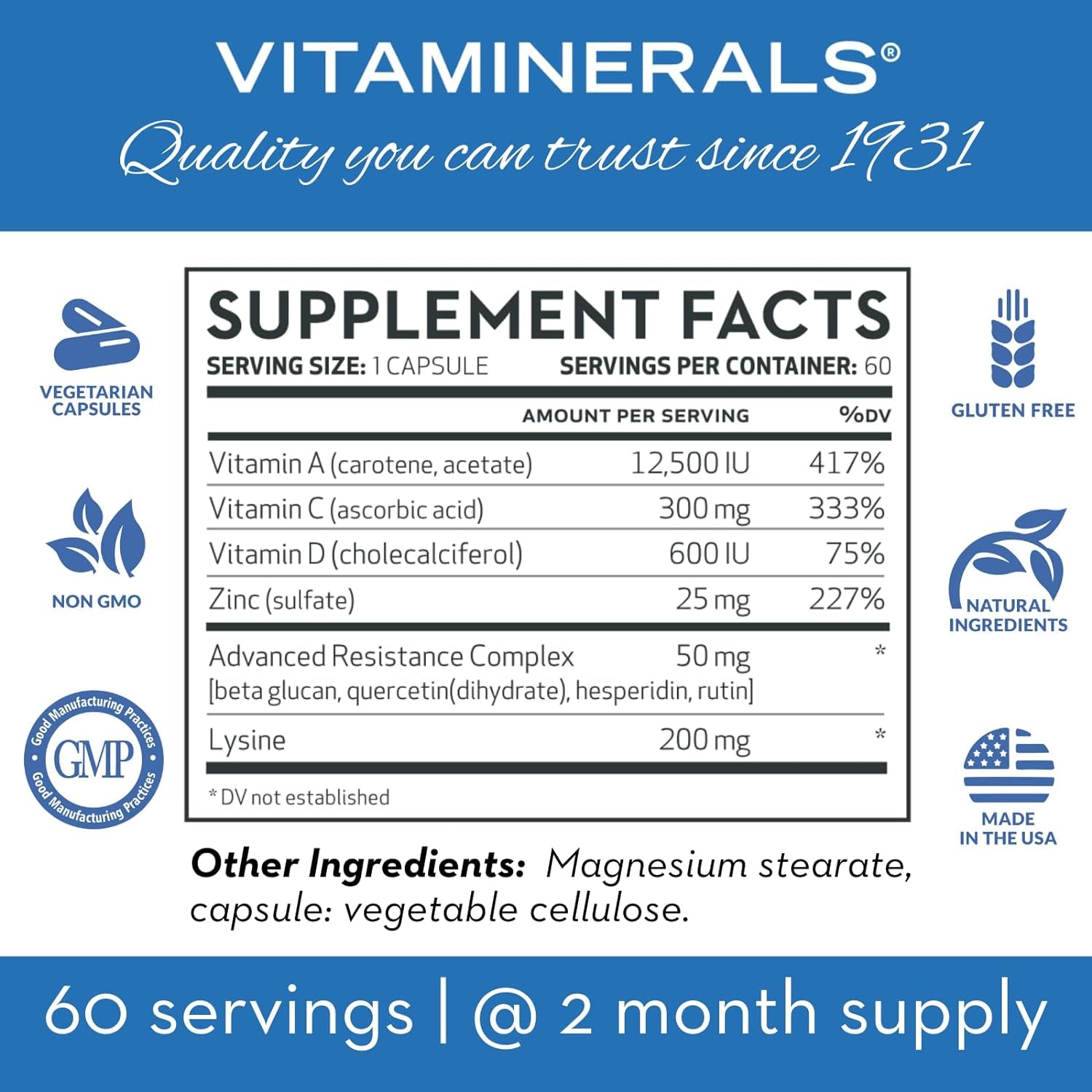 • NATURAL INGREDIENTS IN ONE FORMULA - VITAMIN A, LYSINE, ZINC, VITAMIN C, VITAMIN D3, QUERCETIN