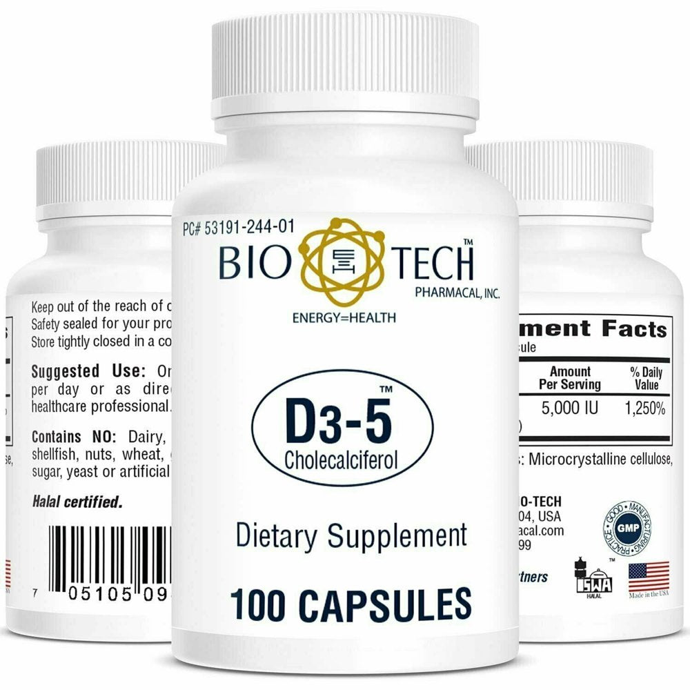 Biotech Pharmacal Vitamin D3-5 Cholecalciferol Dietary Supplement, 100Ct