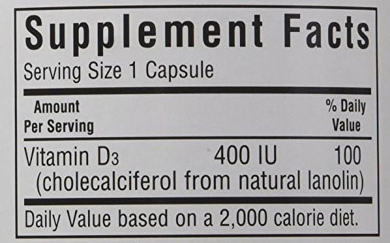 Bluebonnet Nutrition Vitamin D3 400 IU Bluebonnet Nutritionâs Vitamin D3 400 IU Vcaps provide 100% natural vitamin D3 (cholecalciferol) from lanolin in easy-to-swallow vegetable capsules for maximum assimilation and absorption. Natural Lanolin Source Dietary Supplement VitaminsVitamins differ from macronutrients like carbohydrates, proteins and fats by virtue of the amount required. Typically, minuscule amounts are needed in comparison. Plus, vitamins are not used as an energy source.