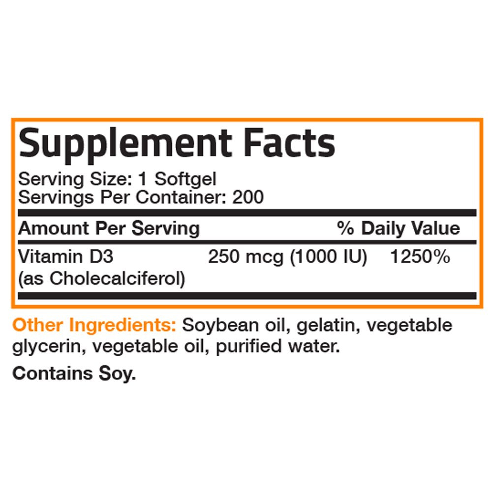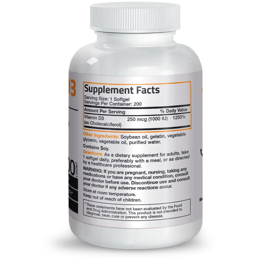 Bronson Vitamin D3 1000 IU, 200 Softgels