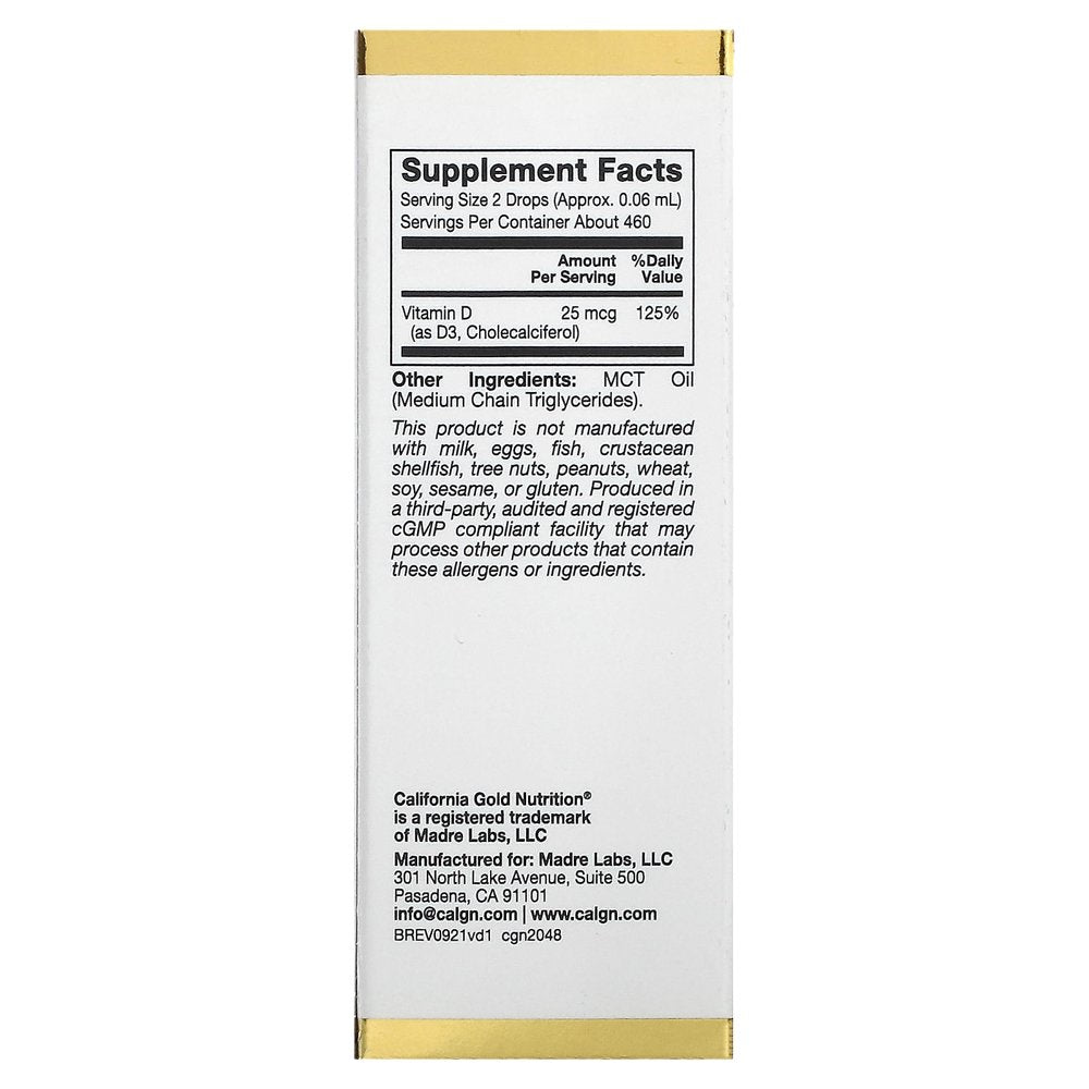 California Gold Nutrition Vitamin D3, 25 Mcg (1,000 IU), 1 Fl Oz (30 Ml)