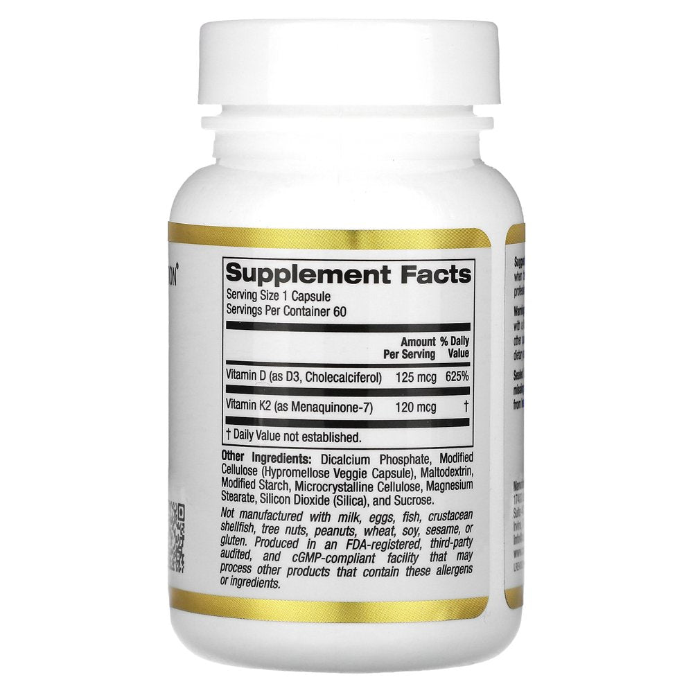California Gold Nutrition Vitamin D3 + K2, 60 Veggie Capsules