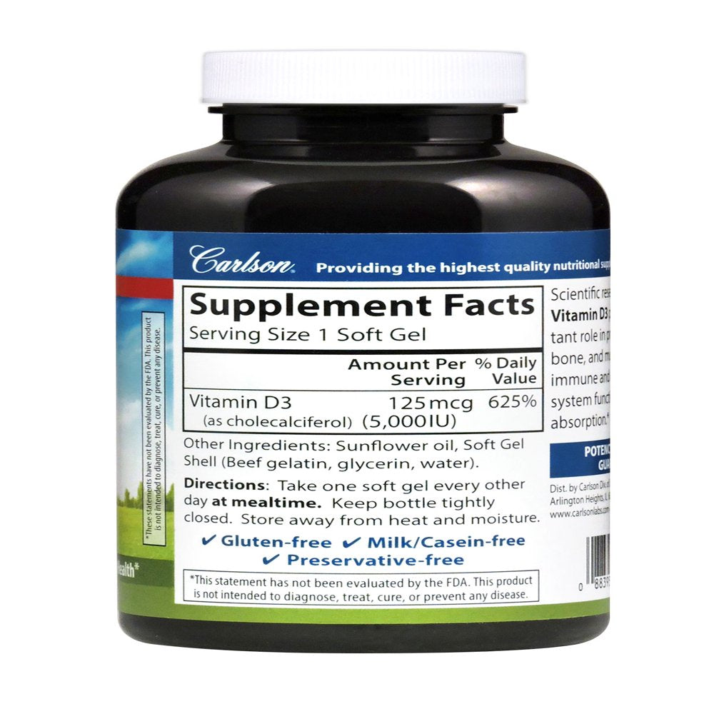 Carlson Vitamin D3 Softgels, 5000 IU, 360 Ct