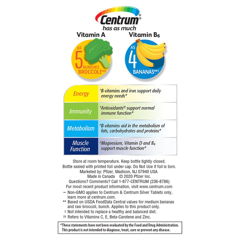 • One 120 count bottle of Centrum Multivitamins for Men, Multivitamin/Multimineral Supplement with Vitamin D3, B Vitamins and Antioxidants