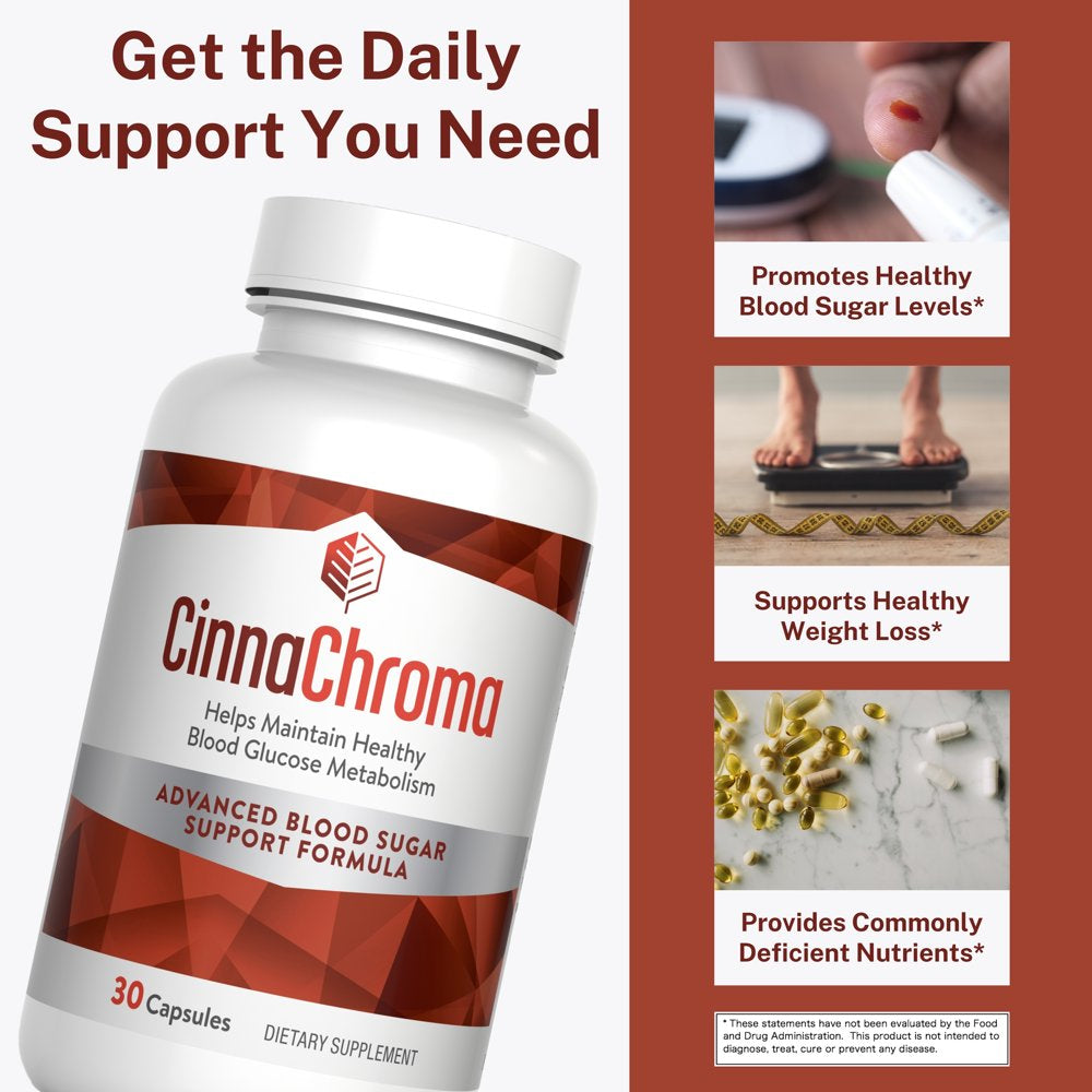 - CinnaChroma Blood Sugar Support Supplement – 30 Cinnamon Capsules with Chromium Picolinate Plus Vitamin D3 and K2