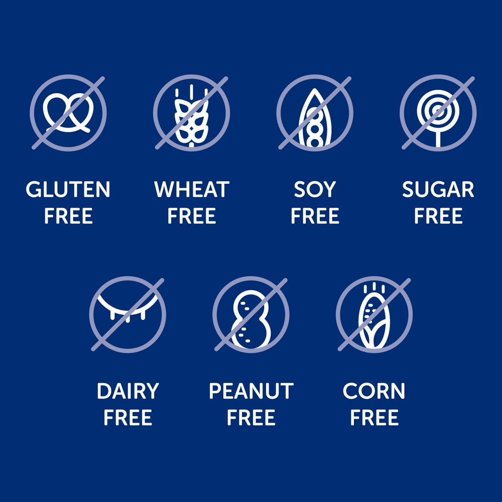 - Free from sugar, artificial preservatives, additives, flavors, colors, and the eight major allergens