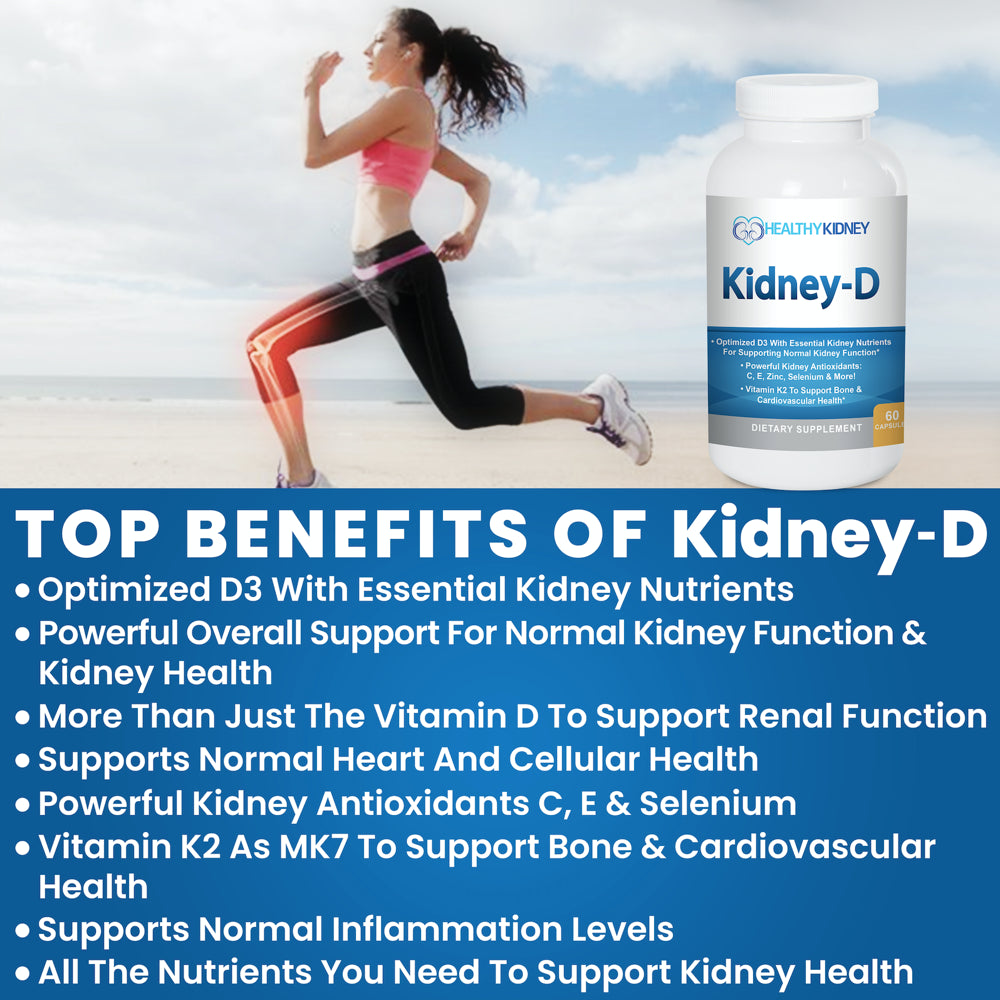 - Our Kidney-D kidney supplement goes way beyond regular vitamin D with the very best nutrients for maximum kidney support. This is Vitamin D designed for kidney support with renal Vitamins K2 as MK7, C, zinc, B12, Folate, Vitamin E and Selenium ensures every bottle provides a solid kidney supplement to add to your kidney health. Vitamin K2 as the better absorbed MK7 to support normal bone health, cardiovascular health and more.