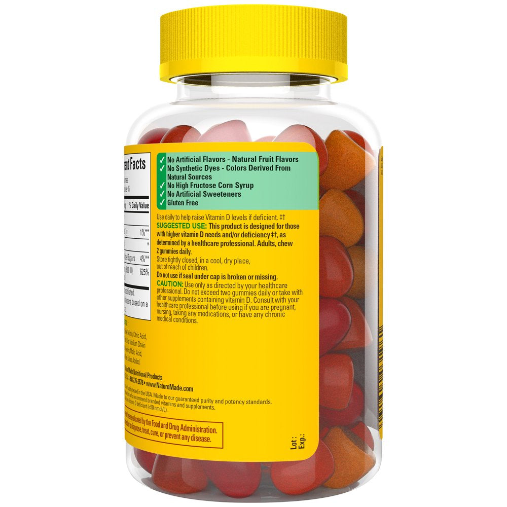 - Nature Made Extra Strength Vitamin D 5000 IU per two gummies supports bone health, teeth health, muscle health, and provides immune support