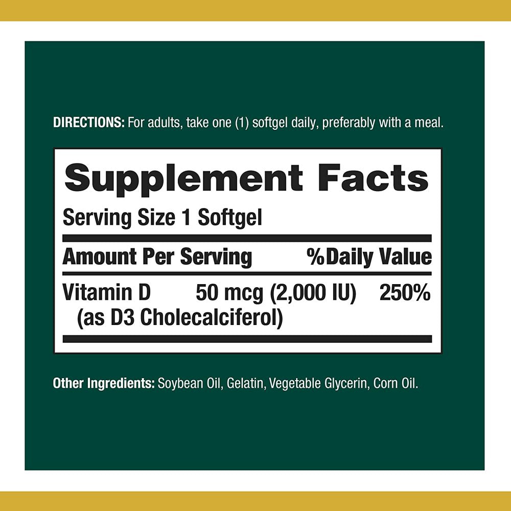 Natures Bounty Vitamin D3 2000 Iu Rapid Release Liquid Soft Gels 240 Ea