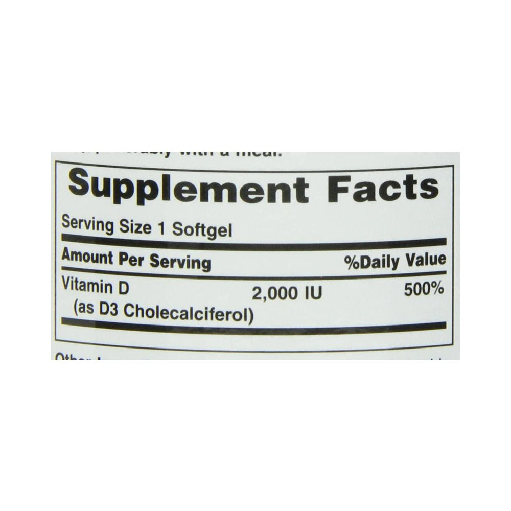 Nature's Bounty® Vitamin D3 2000 IU Rapid Release Softgels. Made with only the purest ingredients. It supports strong bones & immune health. There are no artificial color, no artificial flavor, no artificial sweetener, no preservatives, no sugar, no starch, no milk, no lactose, no gluten, no wheat, no yeast, no fish, no sodium and no GMOs.