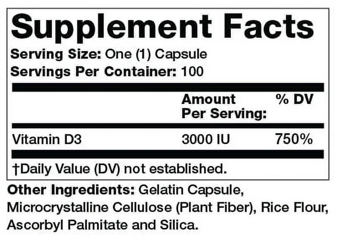 Olympian Labs Vitamin D3 3000 IU - 100 Capsules Vitamin D3 is naturally produced in the skin in response to sunlight and is also present in some food including oily fish. If you don’t get enough Vitamin D3 naturally, taking a supplement will help you maintain normal, healthy levels. Olympian Labs Vitamin D3 is known for supporting metabolism levels already within a healthy range. Supports metabolism levels already within a healthy range.