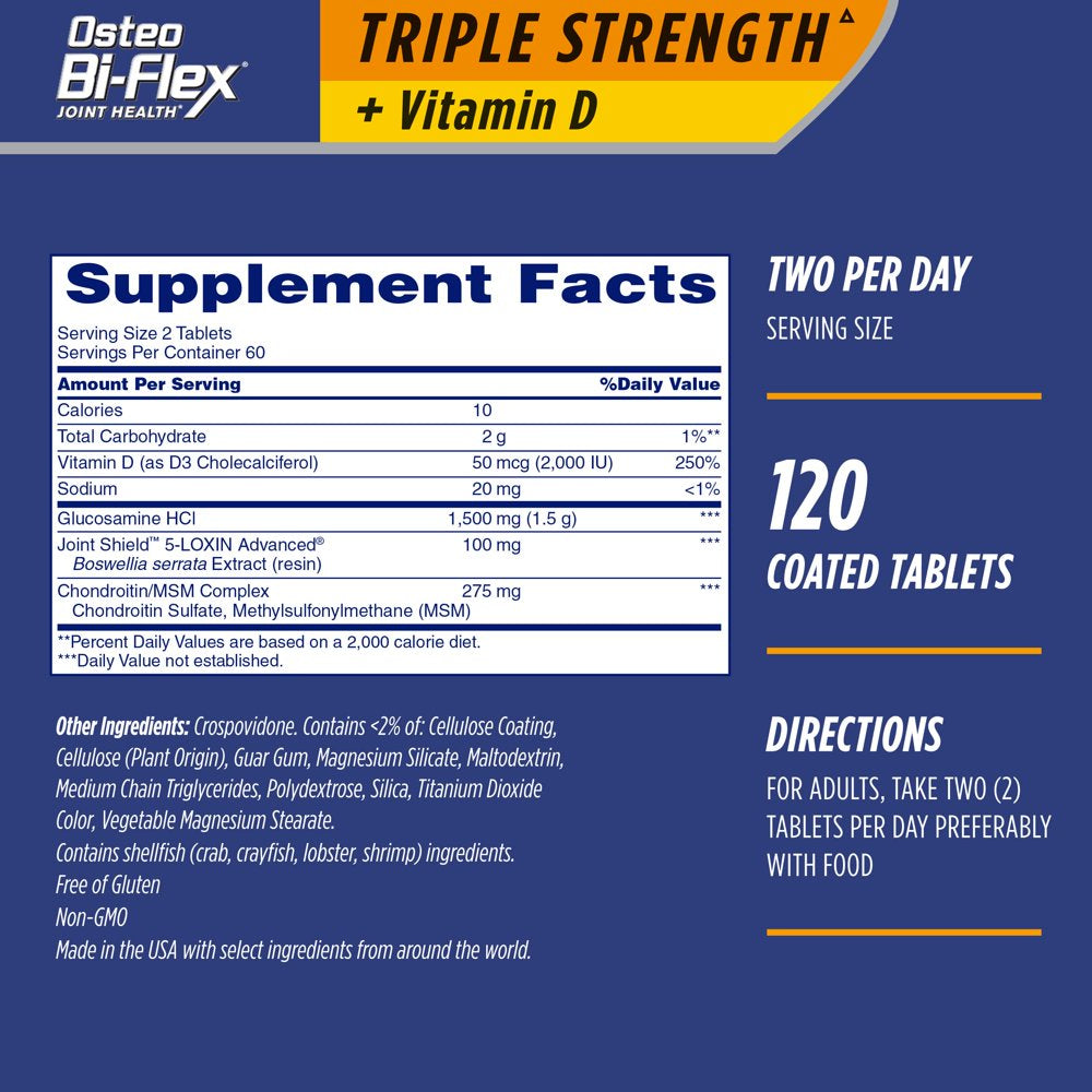 - Osteo Bi-Flex Glucosamine Chondroitin with Vitamin D, Joint Health Supplement, 120 Coated Tablets