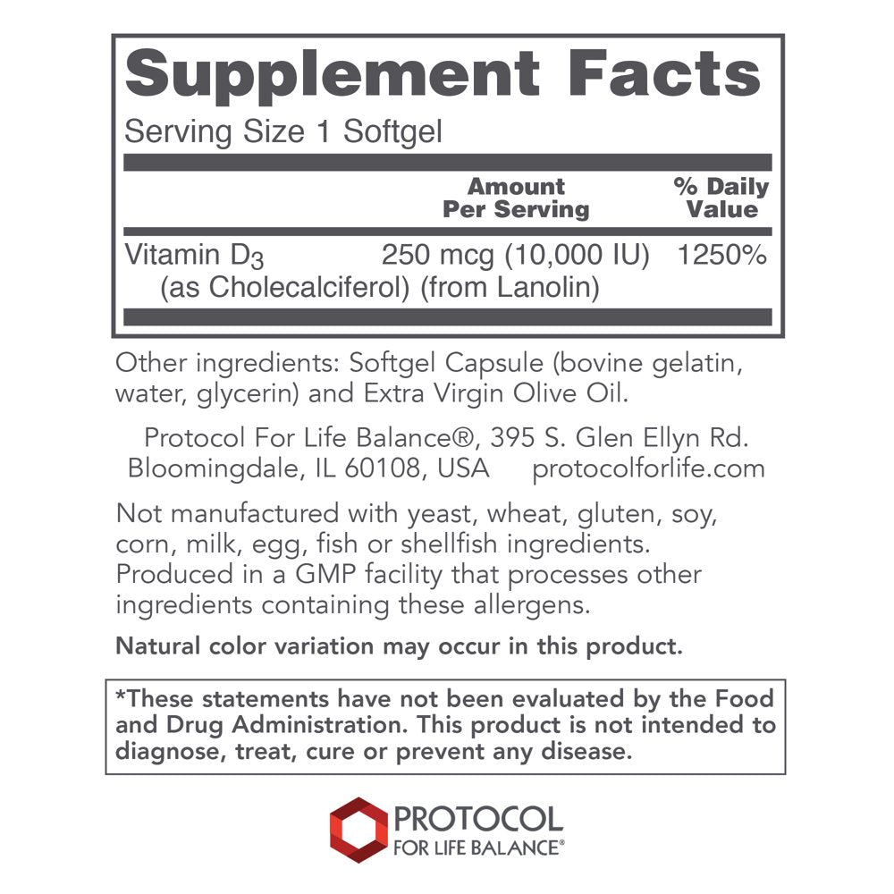 • Protocol for Life Balance Vitamin D3 10,000 IU for Immune Support, Healthy Bones and Teeth