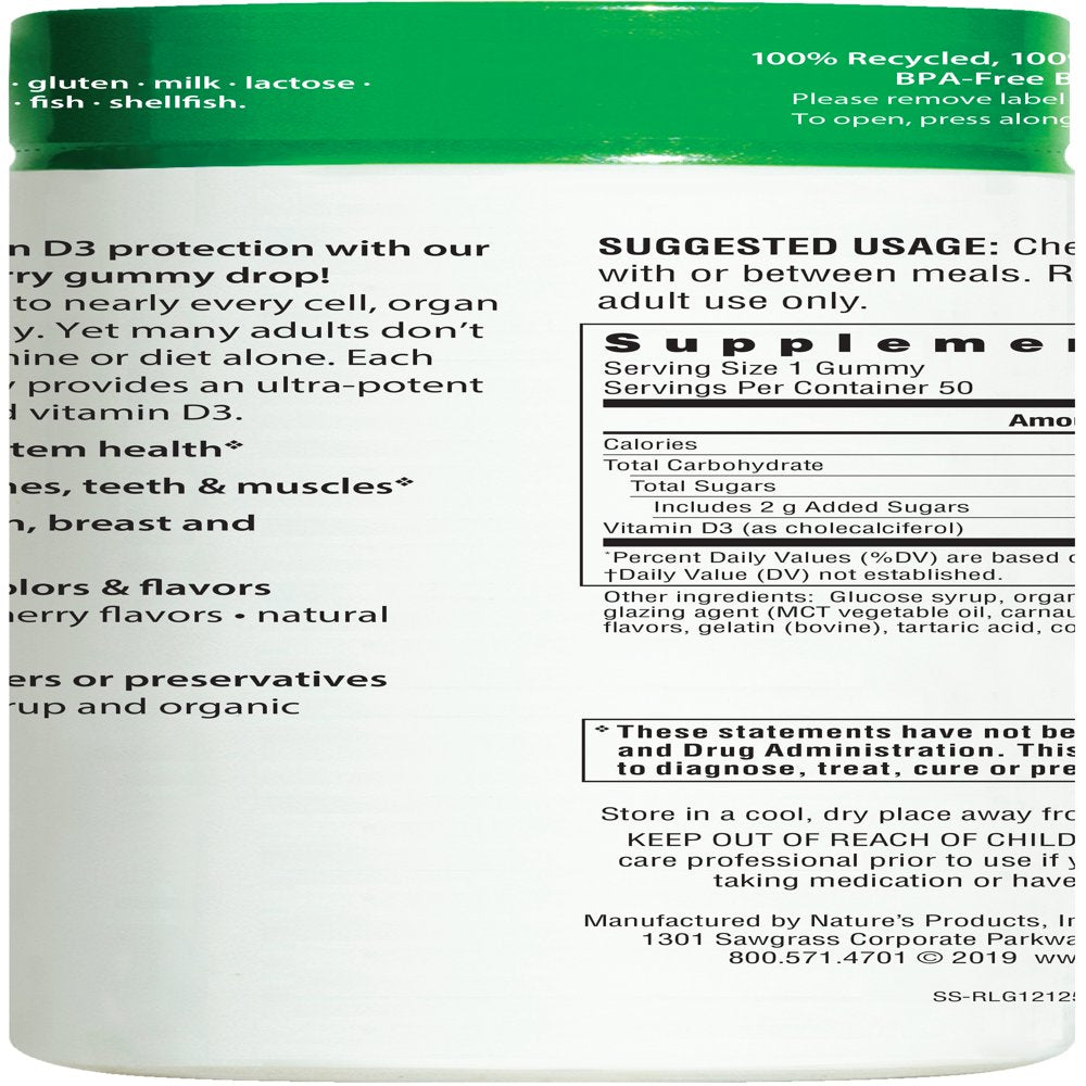 Rainbow Light Vitamin D3 Dietary Supplement Gummies, Raspberry, 2500 IU, 50 Count