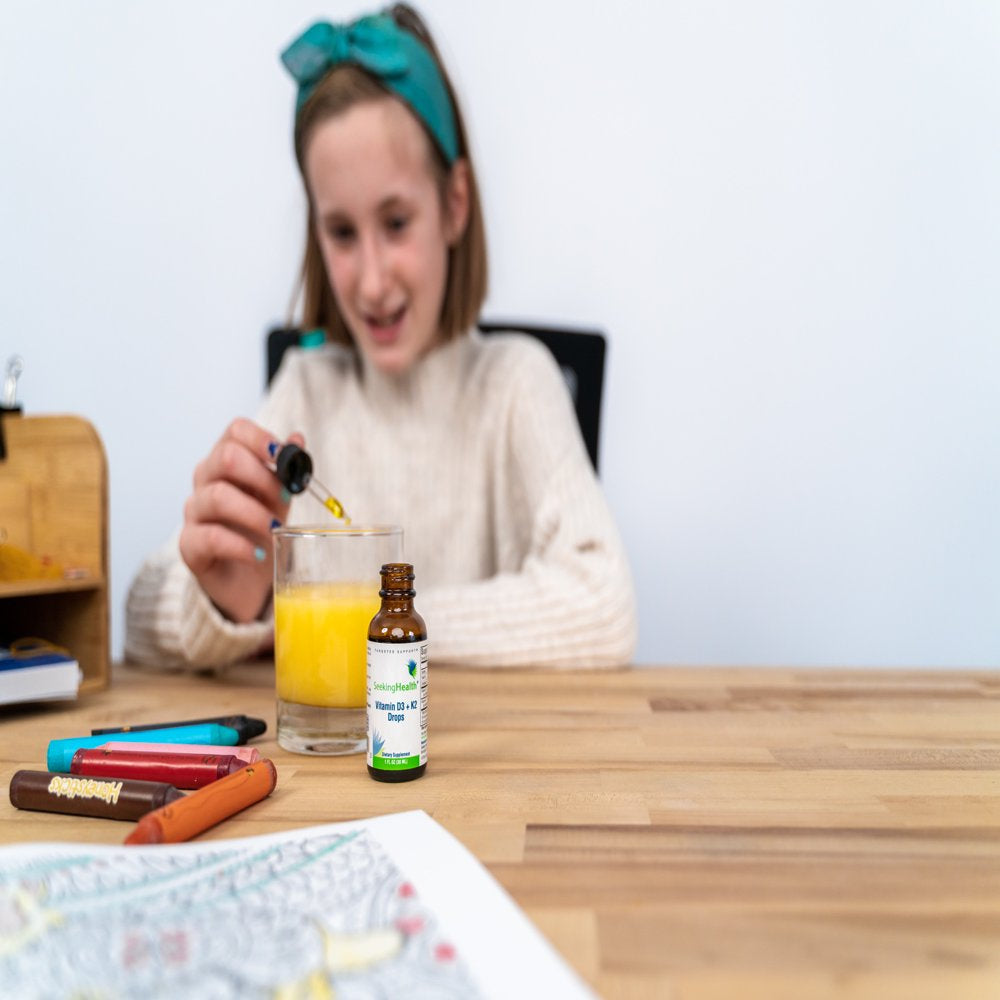 Seeking Health Optimal Vitamin D3 + K2 Drops support bone mineral absorption and growth in adults and children aged four and older. Vitamin D is essential for optimal immune function and calcium absorption while forming strong bones. Vitamin D insufficiency is common in climates with low sunlight.* Derived from sheep’s wool, our drops are suitable for vegetarians. Vitamin K2 is important for mineral absorption, and these Optimal Vitamin D3 + K2 Drops are also vegetarian and soy-free. This liquid allows flexibility in adjusting daily intake and is ideal as vitamins for kids. Take one drop by mouth daily or use as directed by your healthcare professional. These drops are free from milk, egg, fish, shellfish, tree nuts, peanuts, wheat, soy, and artificial preservatives. Seeking Health provides quality vitamin supplements because we believe that, to remain healthy, our bodies need pure, well-formulated nutrients. Seeking Health's founder Dr. Ben Lynch believes that good health starts with the genes. With a research-backed educational foundation and bioavailable nutrients in easy-to-use formulas, Seeking Health helps you live your optimal life now.