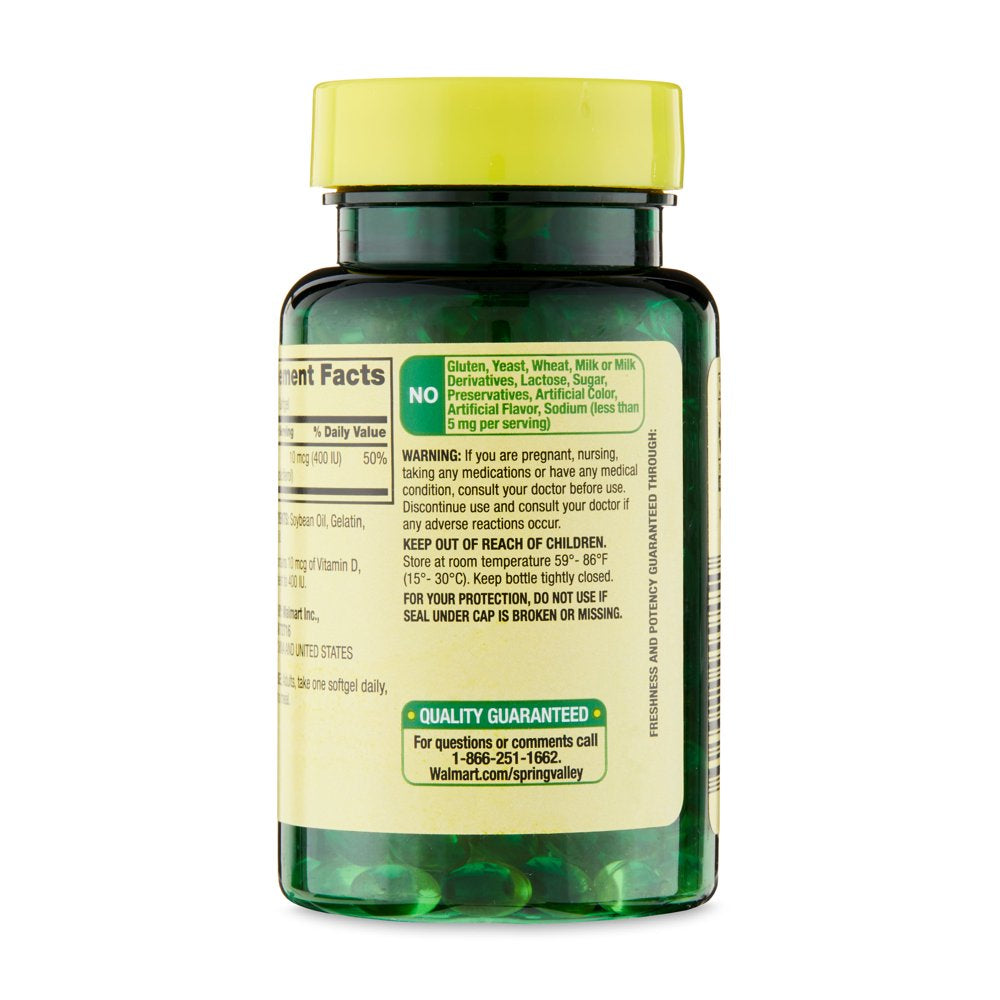 • Spring Valley Vitamin D3 Supplement, 10 mcg (400 IU), 200 Softgels