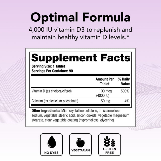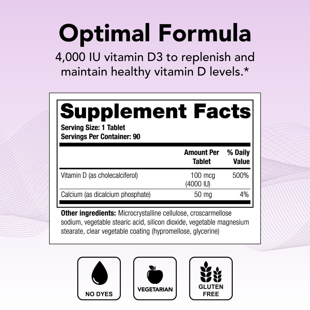 Thera-D 4000 Vitamin D Supplement | 4,000 IU Vitamin D3 Tablets - 90 Day Supply