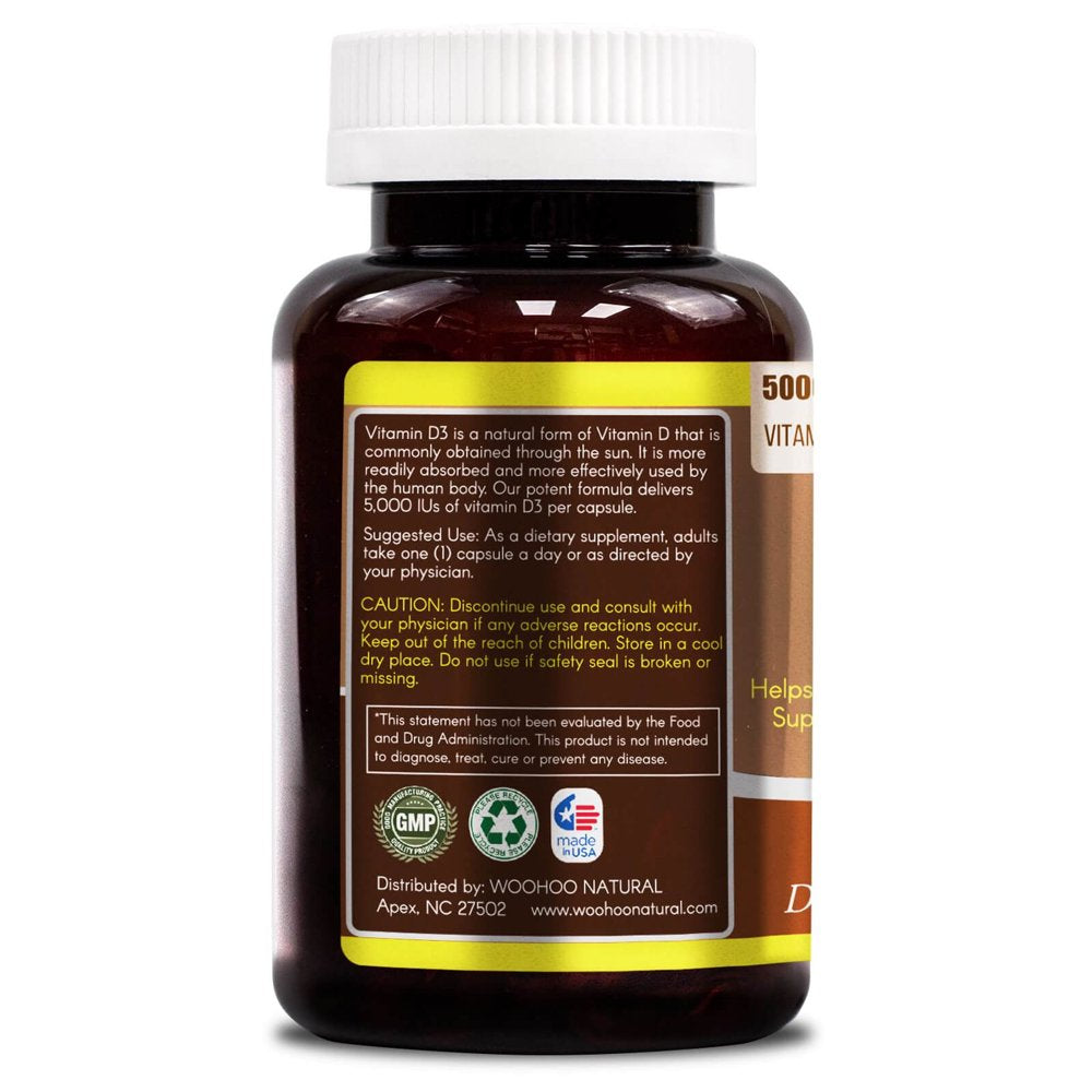 Woohoo Natural Vitamin D (D-3) 5000IU 200 Capsules
