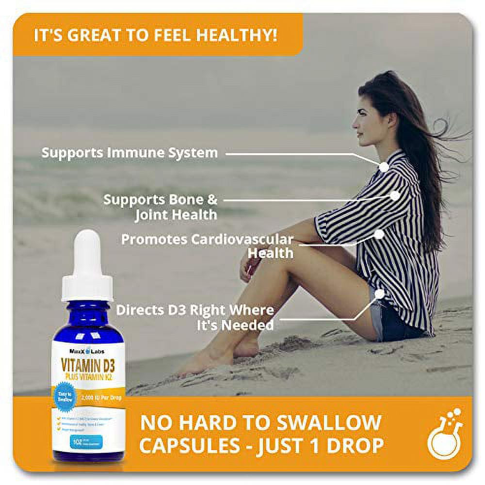 Vitamin D3 Liquid Drops with Vitamin K2 MK-7 ★ New ★ Full 2,000 IU per Drop - Vitamin
