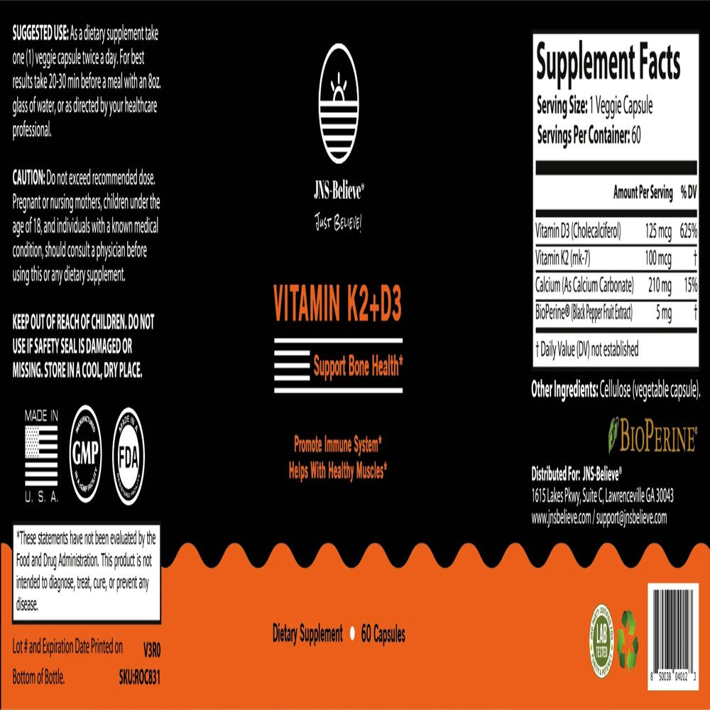 K2 +D3 is formulated to Support bone health, immune function, cardiovascular health, blood sugar regulation, hormonal health, strength, and improved mood. Our formula is third party independently tested for heavy metals and impurities. Made in the USA in a GMP certified and FDA registered facility.