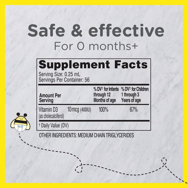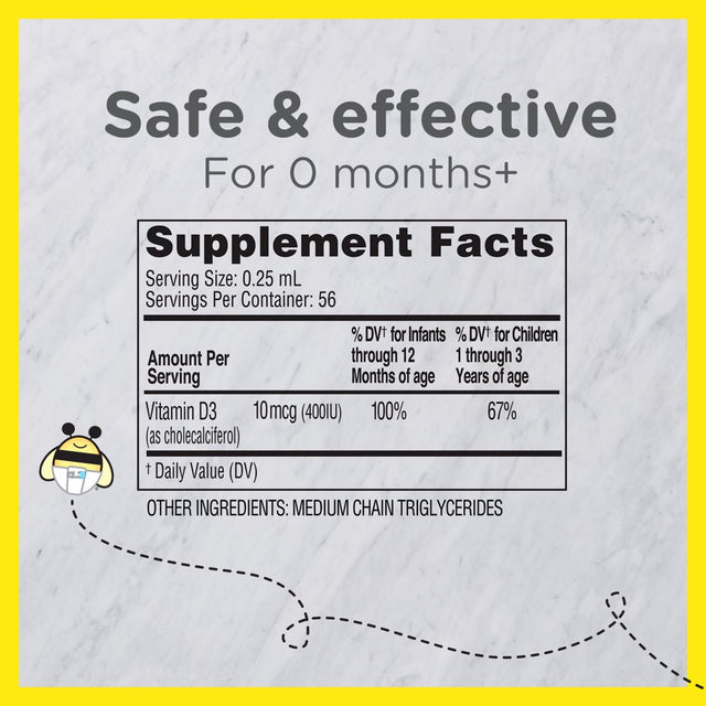 Zarbee'S Baby Vitamin D Supplement, Baby Vitamin D Drops for Infants, Drug-Free, 0.47 Fl Oz