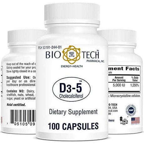 Biotech Pharmacal Vitamin D3-5 Cholecalciferol Dietary Supplement, 100Ct
