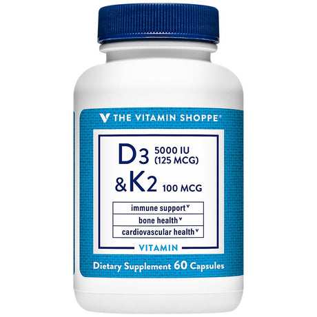Vitamin D3 & K2 - Immune Support & Bone Health - 5,000 IU (60 Capsules)