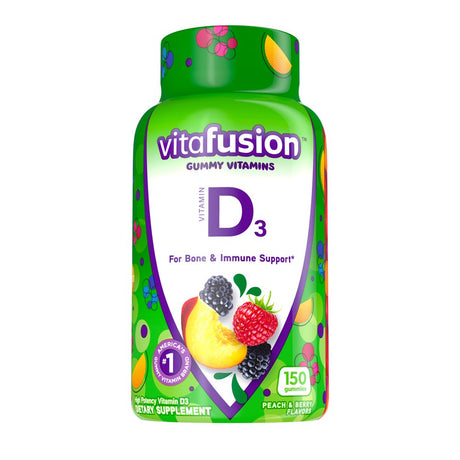 Vitafusion Vitamin D3 Gummy Vitamins, Peach, Blackberry and Strawberry Flavored, 150 Count