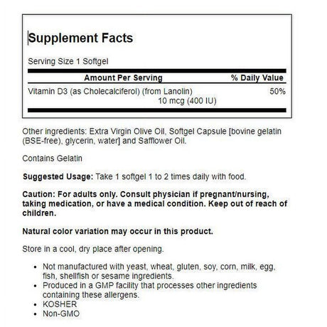 Swanson Vitamin D3 - Higher Potency 2,000 Iu 250 Capsules