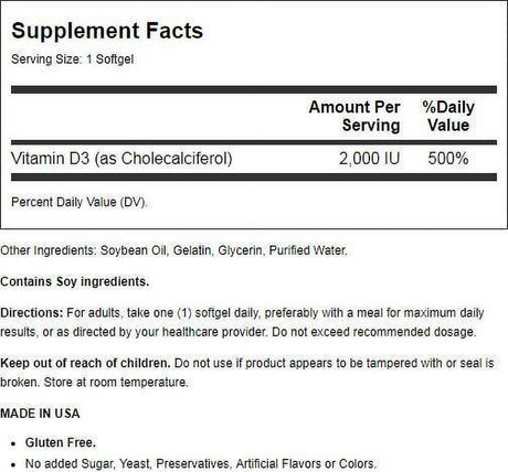 21St Century Vitamin D3, 50 Mcg (2,000 IU), 250 Softgels